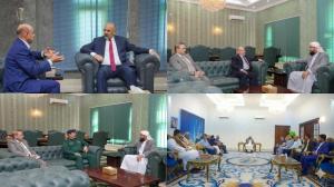 وبالتوازي، استأنف عضو مجلس القيادة الرئاسي، ونائب المجلس الانتقالي عبد الرحمن المحرّمي، لقاءاته المكثّفة في القصر ذاته مع مسؤولي الدولة، بينهم وزير الداخلية ومحافظ البنك المركزي، في اجتماعات تزامنت مع نشاط مماثل للزبيدي، ما يعزز مسار إحلال نفوذ الانتقالي داخل المؤسسات الحساسة مستفيداً من الفراغ السياسي الناتج عن غياب رئيس المجلس.