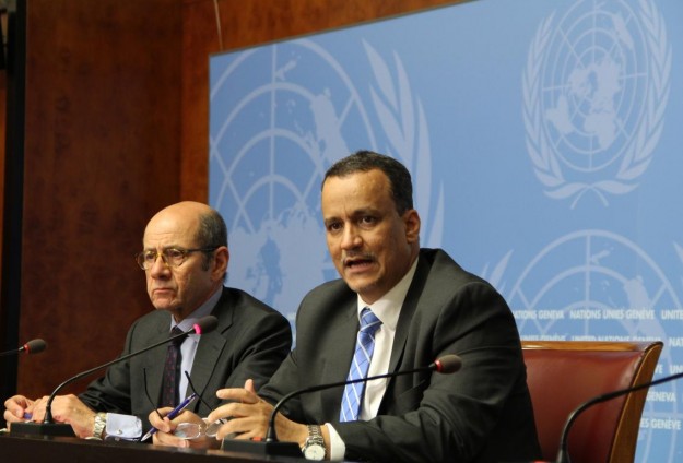 وأشار ولد الشيخ في كلمته الى عدم وجود أفق قريب لانعقاد جولة مباحثات ثالثة بين الأطراف اليمنية مرجعا السبب الى: استمرار الغارات الجوية وإطلاق الحوثيين صواريخ بالستية باتجاه السعودية "دون تمييز".