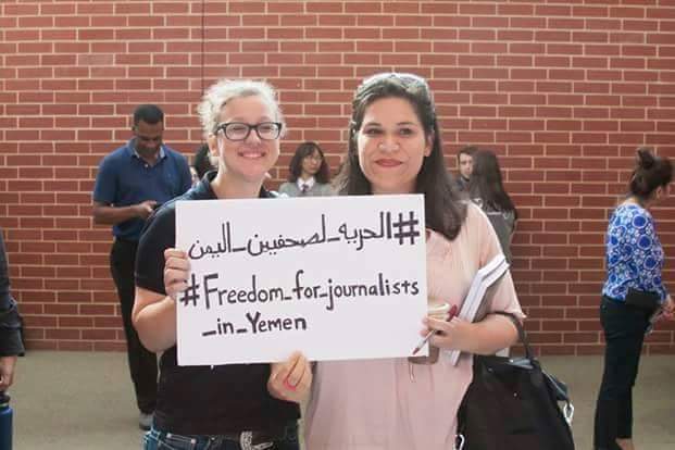 نظم نشطاء يمنيون في ولاية تكساس بالولايات المتحدة الأمريكية فعالية تضامنية مع الصحفيين اليمنيين المختطفين في سجون ميليشيا الحوثي وصالح، الذي مضى على اختطافهم عام كامل.
