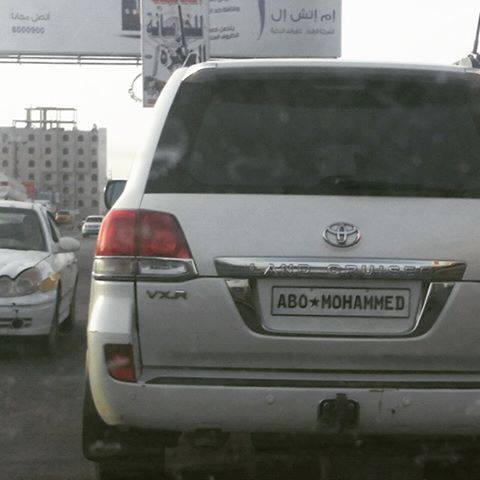 نشر ناشطون في مواقع التواصل الاجتماعي صورة لصالون نوع " لاند كروزر" وهي تحمل لوحة معدنية كتب عليها باللغة الانجليزية " ابو محمد". قيل انها في العاصمة صنعاء.