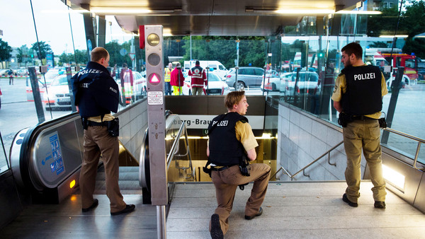 دعت شرطة ميونيخ السكان للبقاء في منازلهم أو الاختباء في المباني القريبة، بعدما أفاد شهود بإطلاق نار في 3 أماكن متفرقة في المدينة، وهي: منطقة بشارع هاناور وفي شارع ريس وفي مركز أولمبيا للتسوق. وقد رجحت الشرطة العمل الإرهابي في الهجمات.