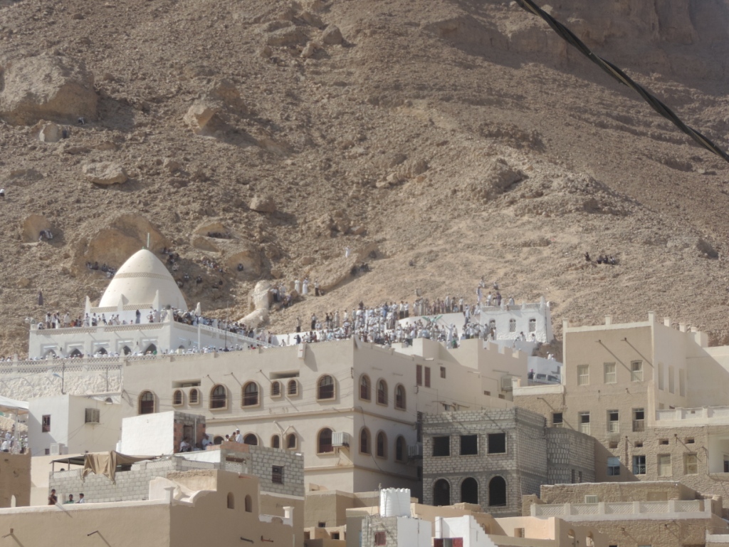 يعقب ذلك الصعود الى هضبة بها قبة بيضاء، ويقع تحتها قبر النبي هود، جوار حجرة متصدعة، وكان في السابق الصعود اليه مشيا على الأقدام، لكن في الوقت الحاضر تم تعبيد طريق اسفلتي إليها.