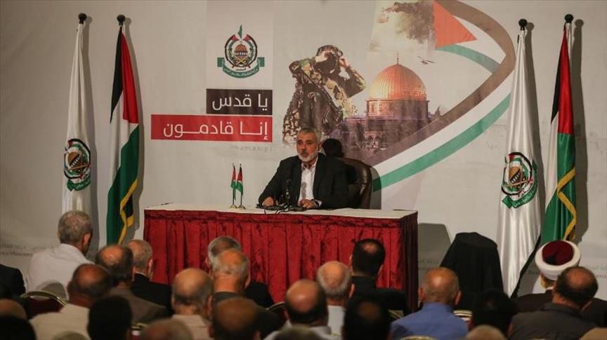 وألقى هنية، اليوم، خطابًا هو الأول بعد فوزه برئاسة مكتب حماس السياسي، في مدينة غزة حول "أولويات الحركة في المرحلة القادمة".