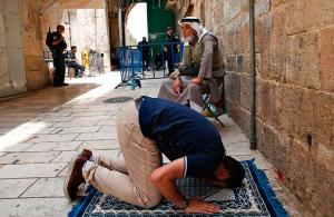 ومازال الفلسطينيون يؤدون الصلوات في الشوارع القريبة من المسجد، رغم رفع البوابات، ويطالبون بإزالة “التعديات التي تمت في المسجد، وعودة الأمور إلى ما كانت عليه قبل 14 يوليو/ تموز الجاري”.