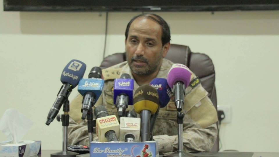 وفي أول ظهور تلفزيوني له بمقر قيادة التحالف في المحافظة أمام جمع مع الصحفيين والإعلاميين القنوات التلفزيونية اليوم الإثنين دعا العميد " الحربي " الإعلام إلى تحمل مسؤولياته في فضح جرائم المليشيات الحوثي والوقوف إلى جانب الشرعية اليمنية وجيشها الوطني والمقاومة الشعبية .