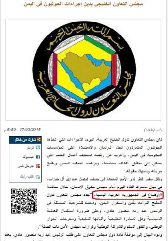 جاء ذلك خلال خبر نقلته صحيفة عكاظ السعودية عن الوكالة حول إدانة مجلس التعاون الخليجي لإجراءات الحوثيون في اليمن.