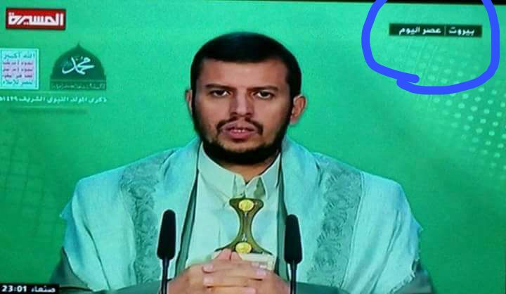 بثت قناة المسيرة مباشر كلمة لعبدالملك الحوثي وكتبت في اعلى الشاشة "بيروت اليوم".