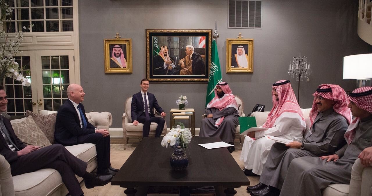 التقى ولي العهد السعودي الأمير محمد بن سلمان، مساء الثلاثاء، كبير مستشاري البيت الأبيض، جاريد كوشنر، ومبعوث الرئيس الأميركي إلى الشرق الأوسط جيسون غرينبلات، وذلك ضمن جدول زيارة ولي العهد الرسمية إلى الولايات المتحدة الأميركية، والتي بدأت في الساعات الأولى من صباح الثلاثاء، وتستمر قرابة ثلاثة أسابيع، وقد استهلها بلقاء الرئيس الأميركي دونالد ترمب.