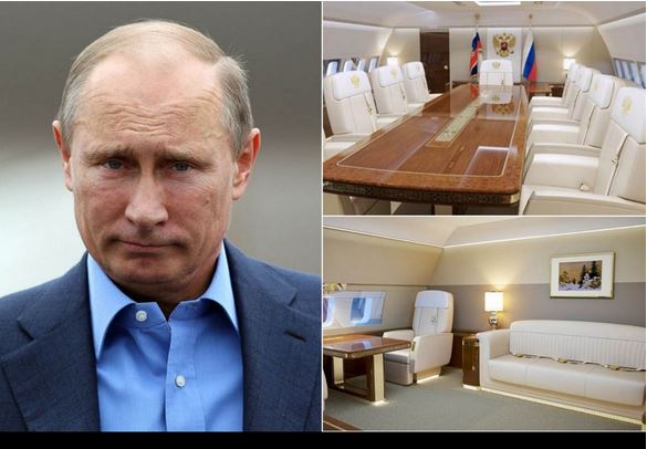 في الوقت الذي تعيش فيه روسيا على شفا كارثة اقتصادية , كشفت صور تم تسريبها على الإنترنت أن الرئيس الروسي ”“فلاديمير بوتين“ أنفق نحو 100 مليون جنيه على اثنين من الطائرات الخاصة الجديدة الفاخرة , وزودها بكراسي من الجلد الأبيض الفاخر وديكورات من الذهب وأسّرة ملكية, بالإضافة للمطابخ وقاعة مؤتمرات وأيضا صالة رياضية, ولوحات ثمينة, ومن المتوقع تسليم الطائرتين بحلول نهاية هذا العام.