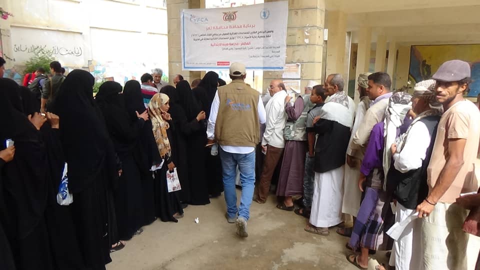 برعاية محافظ محافظة تعز الدكتور امين احمد محمود نفذت جمعية رعاية الاسرة (YFCA) وذلك ضمن البرنامج الطارئ للمساعدات الغذائية بتمويل برنامج الغذاء العالمي (WEP) توزيع المساعدات الغذائية الطارئة بمحافظة تعز في مديريتي المظفر والقاهرة .