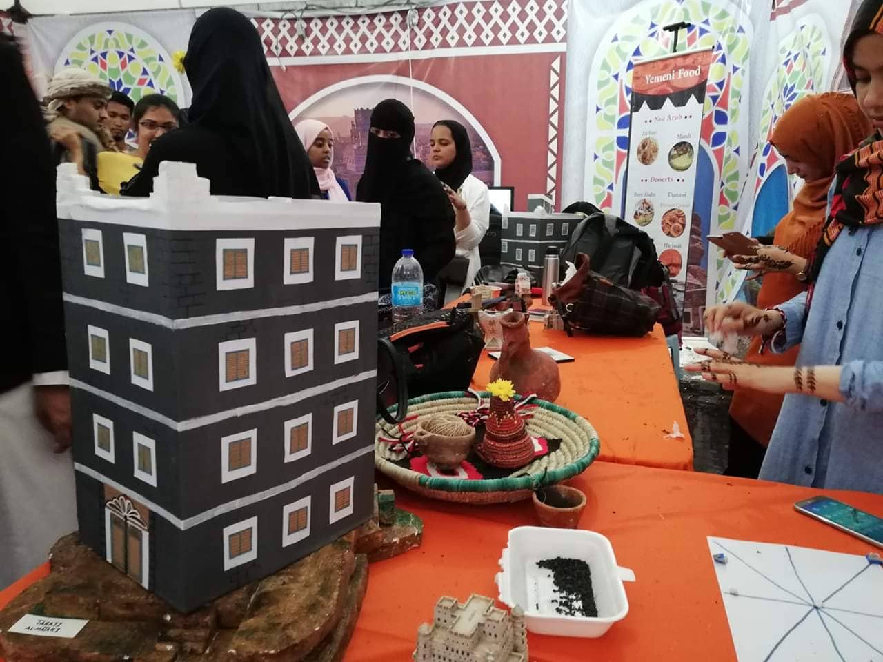 ومن خلال هذه المشاركة الفاعلة يصر اليمني على البقاء ومكابدة الآمه المعيشية وغربته وشتاته حيث تضم المعارض مجموعة من الإكسسوارات ، والأحجار الكريمة وشبه الكريمة والفضة العتيقة واللؤلؤ، إضافة إلى العسل والبن واللبان والمأكولات اليمنية ، ولوحات وبروشورات إرشادية وتاريخية بلغات مختلفة عكف على ترجمتها طلاب هذه الجامعات .