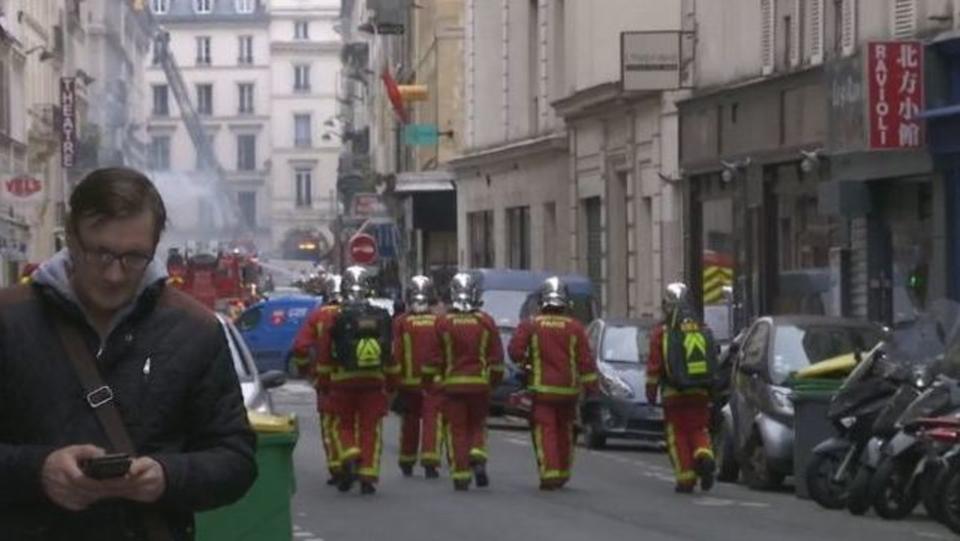 وسحب رجال إطفاء المصابين من النوافذ وأخلوا السكان بينما تصاعد الدخان من موقع الانفجار في مخبز بمبنى في شارع تريفيسي في الدائرة التاسعة قرب كاتدرائية القلب المقدس بشمال وسط باريس.