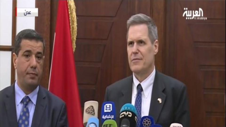 قال السفير الأميركي في اليمن، الخميس، إن واشنطن تبذل كل الجهود الممكنة لإنهاء الصراع في اليمن، مشيراً إلى أن بعض المجموعات اليمنية تهدد بأسلحة ثقيلة دول الجوار.
