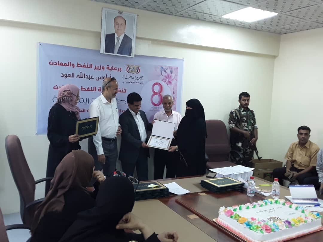 عدن :وزارة النفط والمعادن تكرم 27 موظفة من الوزارة والوحدات التابعة لها بمناسبة يوم المرأة العالمي