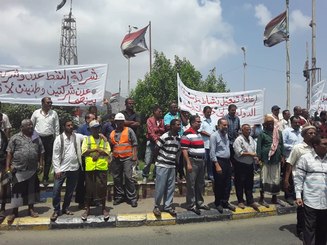 تواصلا مع وقفاتهم الاحتجاجية وبرنامج التصعيد النقابي، نظم العاملون بشركة النفط، صباح اليوم ( الاحد ) وقفة احتجاجية في جولة البريقة مطالبين بتحرير مؤسسات الدولة من هيمنة التجار وإعادة تفعيل نشاط المؤسسات الحكومية.