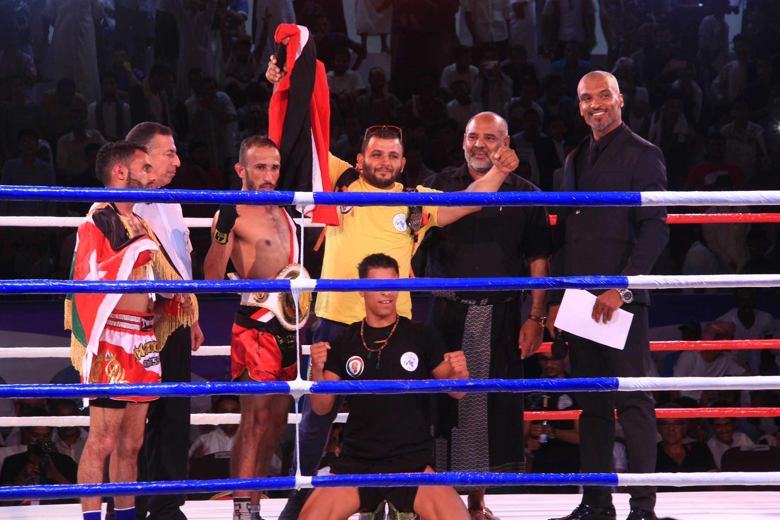 فاز الملاكم اليمني حامد المطري على نظيره الاردني مصطفى بوصيام ضمن جولات بطولة العالم للملاكمة العربية للمحترفين بوزن 54 كجم.
