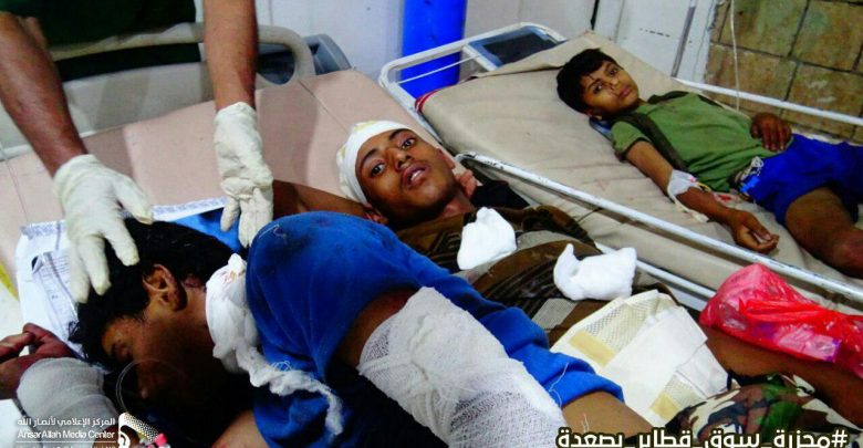 قتل وجرح أكثر من 30 مدنياً بقصف استهدف سوقاً شعبياً في محافظة صعدة.