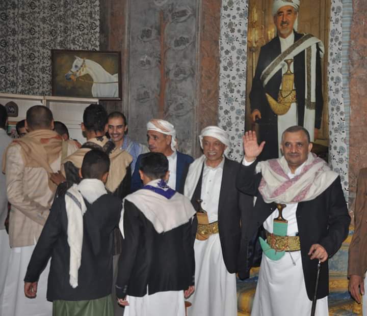 وتعد مراسيم التهنئة التي تقام في المنزل تقليدي سنوي منذ أيام الشيخ الراحل عبدالله بن حسين الأحمر، طيب الله ثراه.