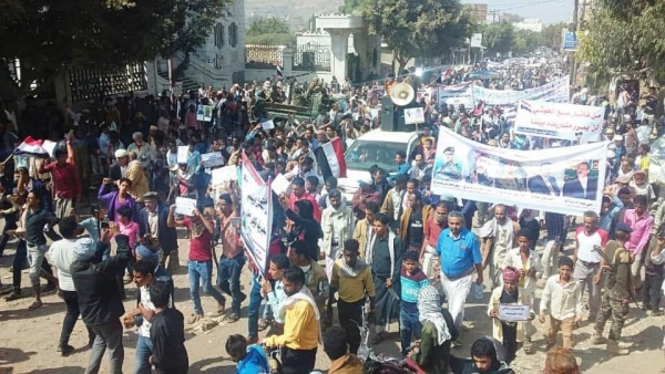 شهدت مدينة التربة بمحافظة تعز، السبت، مظاهرة حاشدة للمطالبة بإخلاء المدينة من الجماعات المسلحة، ورفع المعسكرات المستحدثة وملاحقة المطلوبين أمنياً.