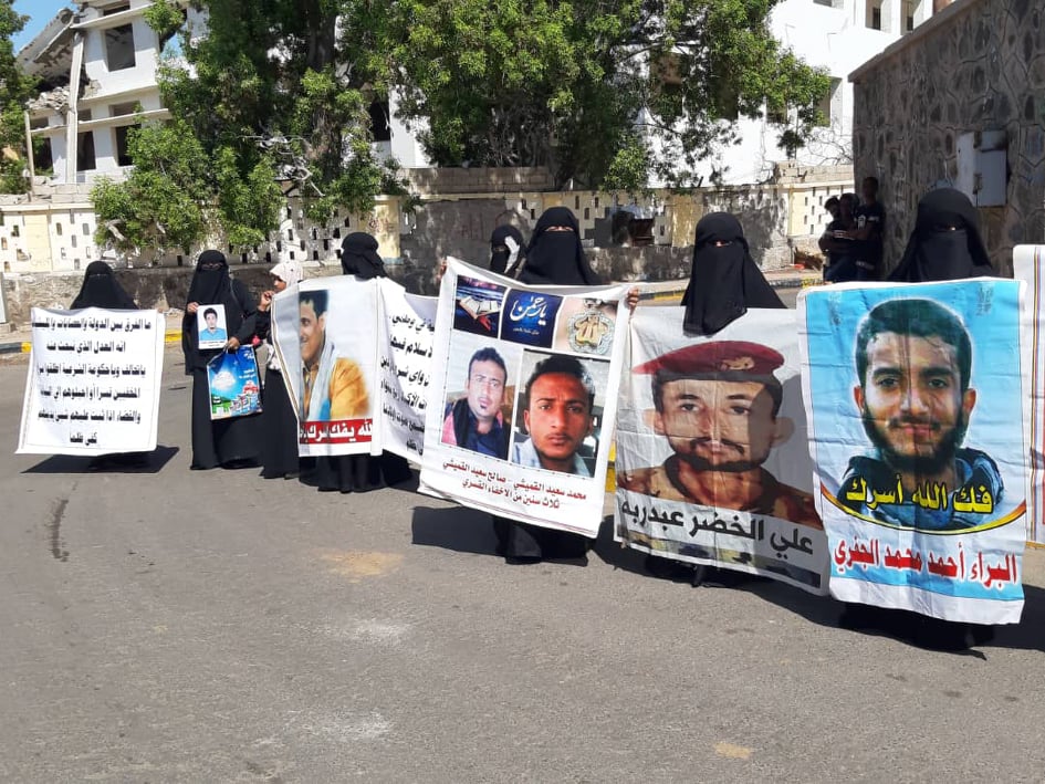 نفذت أمهات المخفيين قسرياً في السجون السرية بالعاصمة المؤقتة عدن، وقفة احتجاجية صباح اليوم الثلاثاء، أمام بوابة مقر الحكومة (المعاشيق)، للمطالبة بالكشف عن ذويهن، واضطلاع الحكومة الشرعية بدورها في رعاية مواطنيها، وسط رفض عددٍ من أفراد مليشيا الانتقالي لتنفيذ الوقفة.