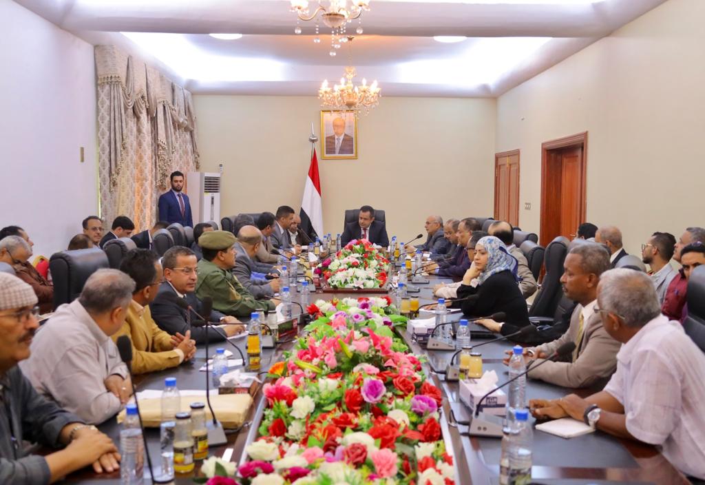 ووقف الاجتماع أمام معطيات الوضع العام في مدينة عدن، بهدف الخروج برؤية شاملة للمعالجات اللازمة، في مختلف المجالات، وبما ينعكس على تحسين وضع ومعيشة المواطنين اليومية في العاصمة المؤقتة وبقية المحافظات المحررة.