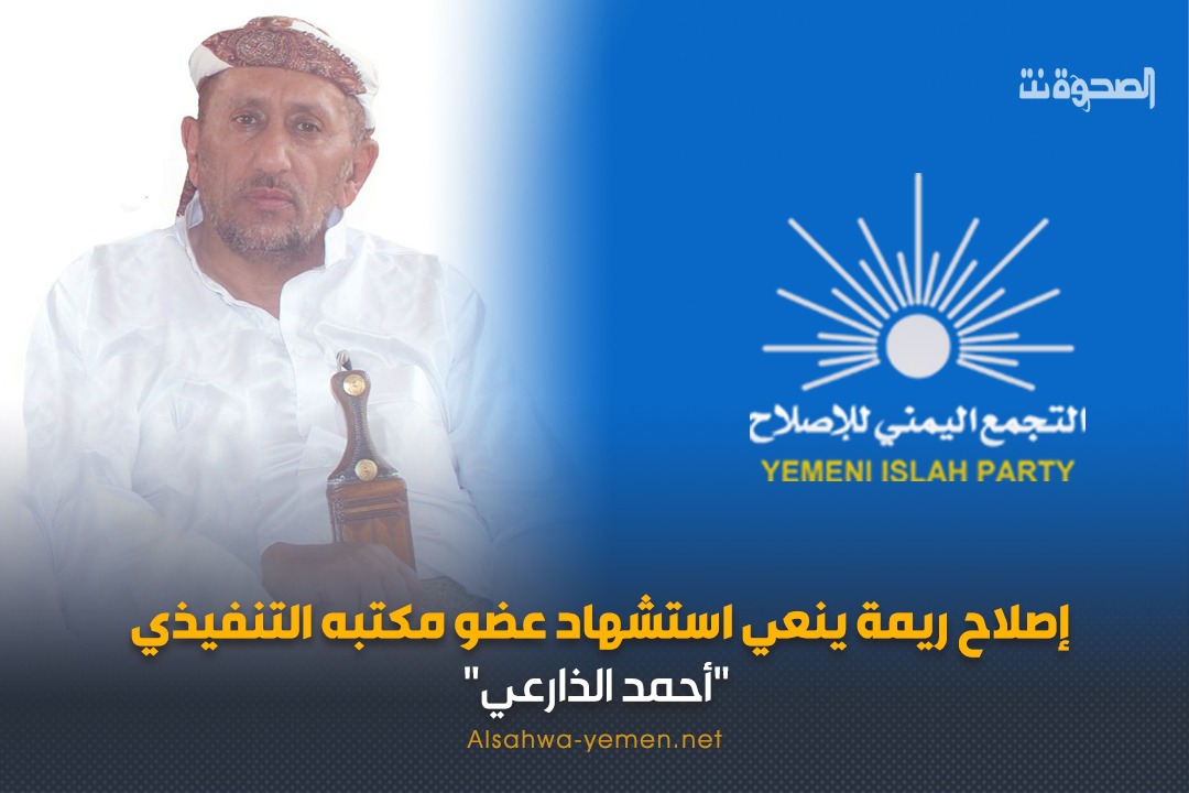 وذكر موقع "الصحوة نت"، الناطق باسم الحزب، أن "القيادي بالحزب، أحمد حميد الذارعي، استشهد أثناء مغادرته جبهة نهم، متوجهًا إلى مدينة مأرب (شرق) لأخذ استراحة محارب".