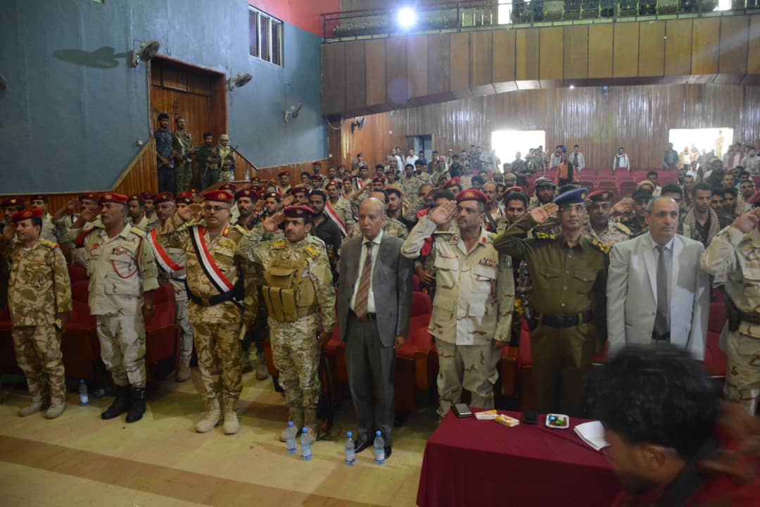 وشدد وكيل أول المحافظة على أهمية ترسيخ عقيدة وطنية صادقة لدى الأفراد، بما يدفعهم للتفاني في خدمة الوطن، وحماية الشرعية الدستورية وهزيمة إنقلاب مليشيا الحوثي الارهابية المدعومة من إيران .