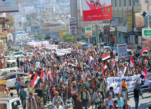 احتفى الألاف في محافظة تعز، السبت، بالذكرى الـ 52 لعيد الاستقلال الوطني الـ 30 من نوفمبر المجيد.