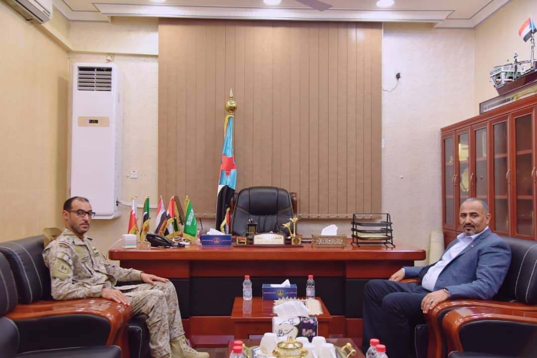 التقى رئيس المجلس الانتقالي الجنوبي عيدروس الزُبيدي، السبت، قائد قوات التحالف العربي العميد مجاهد العتيبي في المقر الرئيس للمجلس الإنتقالي غربي عدن جنوبي البلاد.