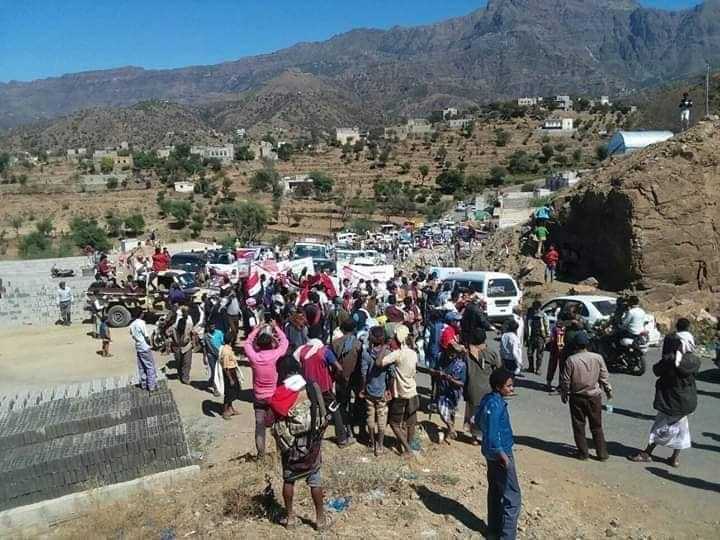 وخرجت المسيرة الراجلة، صباح اليوم، من مدينة التربة مركز مديرية الشمايتين إلى أمام مقر اللواء 35 مدرع بمنطقة العين في مديرية المواسط جنوب المحافظة.