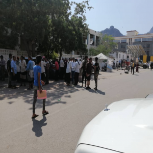 كما تجمع عسكريون محتجون آخرون بالقرب من البوابة الخارجية للقصر الرئاسي في معاشيق ورفضوا المغادرة حتى تتدخل الحكومة بشكل عاجل لصرف مستحقاتهم.