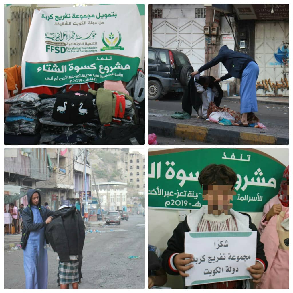 تعز :بتمويل مجموعة تفريج كربة فجرالأمل توزع كسوة الشتاء