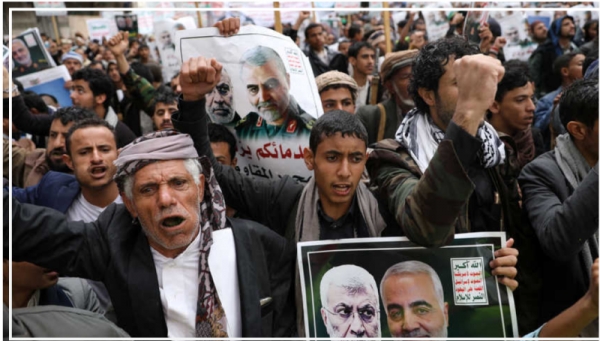 القائد الإيراني الراحل ليس الآن بطلاً قومياً للإيرانيين فقط بل للحوثيين اليمنيين الذين خرجوا إلى الشوارع وعرضوا صوره.