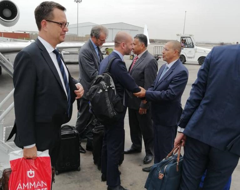 ووفق وكالة الأنباء الحكومية سبأ، فإن الوفد يضم سفير الاتحاد الأوروبي لدى اليمن هانز جروندبرج، والسفير الفرنسي كريستيان تيستو، وسفير الاتحاد السويسري غير المقيم لدى اليمن بالز اببلانالب، وآخرين.