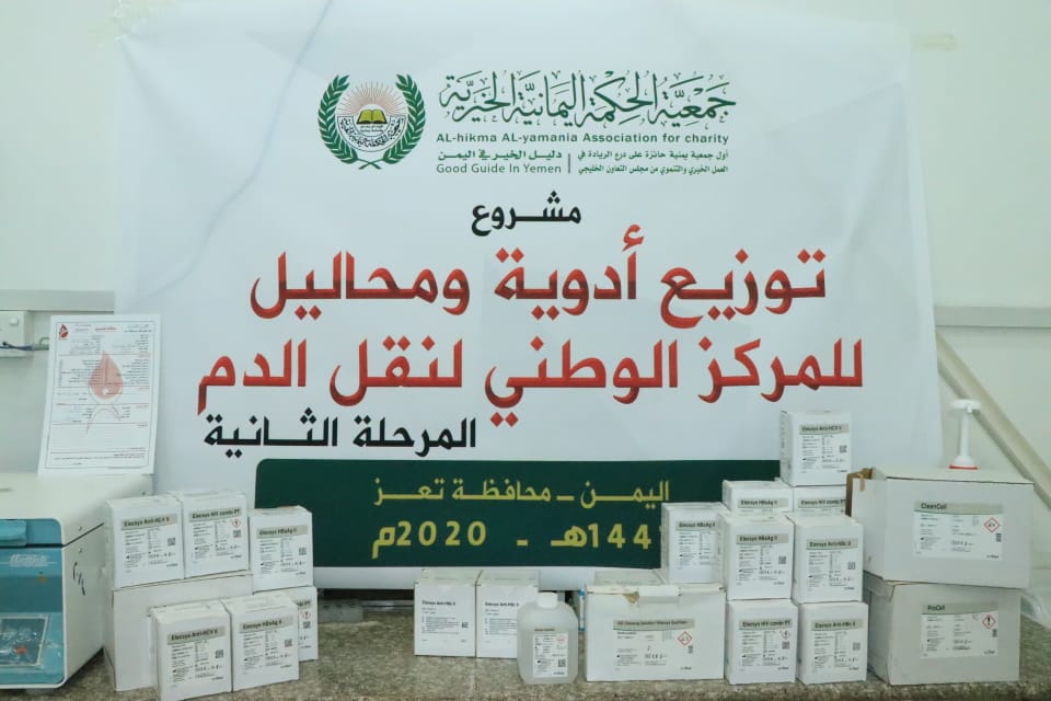 سلمت جمعية الحكمة اليمانية الخيرية المركز الوطني لنقل الدم بمستشفى الثورة في تعز محاليل الطبية للفحوصات الفيروسيه بتكلفة بلغت 5300 دولار امريكي وذلك في اطار المرحلة الثانية لدعم المركز............ وخلال التسليم اشار مسؤول المشاريع الصحية وسيم القباطي ان الجمعية عملت على تسليم محاليل طبيه مهمه ونادرة لمركز الدم كمرحلة ثانية وقد سبقها في مطلع شهر اكتوبر 2019 توفير جهاز فحص الهيموجلوبين ، وتوفير المحاليل الطبية اللازمة لتشغيل المركز وذلك ضمن المرحلة الاولى وبتكلفة بلغت 5000 دولار امريكي .. وكما نوه مدير العلاقات والاعلام بالجمعية عادل عقلان بان تسليم المحاليل جاء
