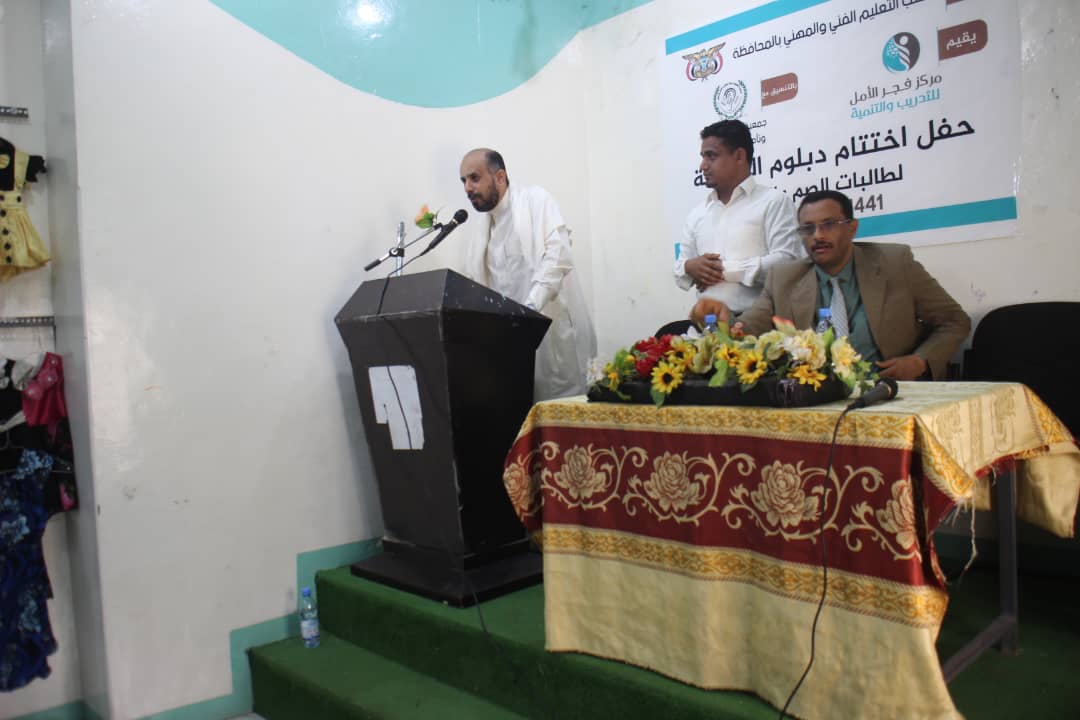 والأستاذة حنان ممثلة مكتب التعليم الفني والمهني بالمحافظة وفي الحفل الذي ألقيت فيه العديد من الكلمات التحفيزية والتشجيعية واستعراض المنتجات الخاصة بالخريجات