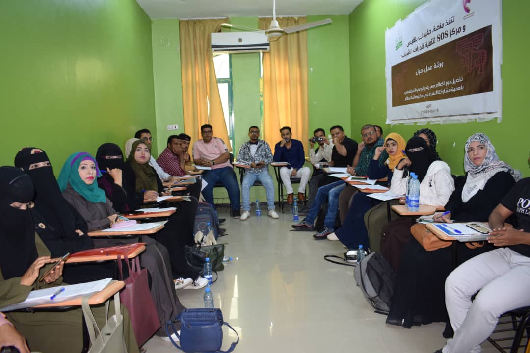 نظمت منصة حفيدات بلقيس ، بالتعاون مع مركز sos لتنمية قدرات الشباب ، اليوم في عدن ، ورشة عمل خاصة بدور الاعلام في رفع الوعي المجتمعي حول أهمية مشاركة النساء في مفاوضات السلام ، بمشاركة 24 اعلامي واعلامية من مختلف الوسائل الاعلامية .