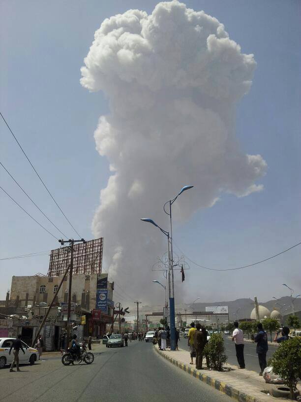 شهدت العاصمة صنعاء أكبر انفجار منذ بدأ عاصمة الحزم في أواخر مارس الماضي.