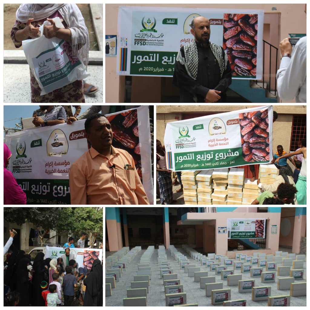 تعز :بتمويل كريم من إكرام النعمة فجر الأمل FFSD تختتم مشروع توزيع التمور