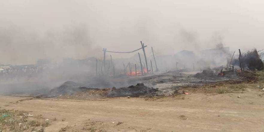 توفيت طفلة وأصيب أربعة نازحين جراء حريق هائل اندلع في مخيم للنازحين، بمديرية الخوخة جنوبي محافظة الحديدة (غرب اليمن) صباح اليوم الخميس.