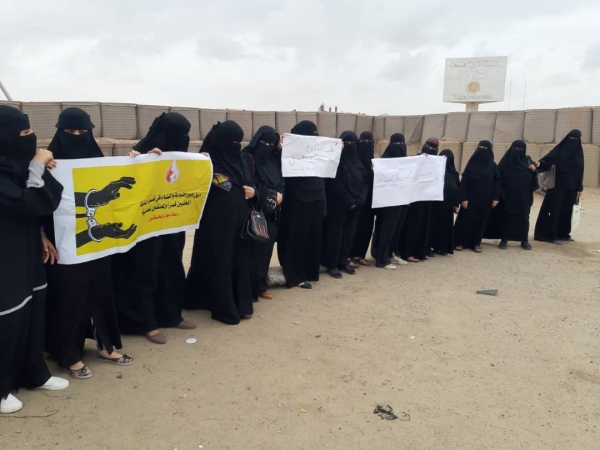 ناشدت رابطة أمهات المختطفين بمحافظة عدن انقاذ أبنائهن المعتقلين المضربين عن الطعام منذ يوم الخميس الماضي 12 مارس 2020م. جاء ذلك في وقفة احتجاجية نفذتها الرابطة، اليوم الأحد، تنديدا باستمرار احجازهم ومطالبة بانصافهم والإفراج عنهم. وأكد بيان وقفة الأمهات، أن المعتقلين منذ ثلاثة أعوام تم اعتقالهم بدون أي مسوغ قانوني أو تهم موجهه لهم، ورغم صدور أوامر بالإفراج عنهم من قبل النيابة العامة لكن لم يفرج عنهم حتى اليوم. وقالت الأمهات إنهن يعشن قلقاً على أبنائهن بسبب إضرابهم عن الطعام والذي سيستمر حتى يتم الإفراج عن من صدر في حقهم أمر الإفراج والنظر الى ملفات بقية المعتقلين وانصافهم. وذكر البيان أن المعتقلين أبلغوا أمهاتهم رفضهم الزيارات مما زاد قلق الأمهات على فلذات أكبادهن وعلى وضعهم الصحي. وطالب بيان الأمهات بالضغط على القضاء والنيابة العامة من أجل قضية المعتقلين، مناشدات كل الجهات المختصة والجهات المعنية والحقوقية إنقاذ المعتقلين تعسفياً وتمكينهم من حقوقهم الإنسانية ونيل حريتهم كاملة