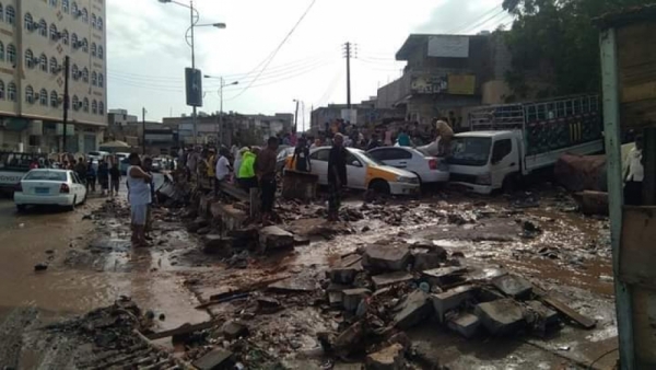 وبحسب المصادر فقد تدفقت مياه السيول من جبل شمسان لتجرف جزء كبير من الشوارع في المعلا، فيما أغرقت السيول حي القطيع بكريتر في مديرية صيرة.