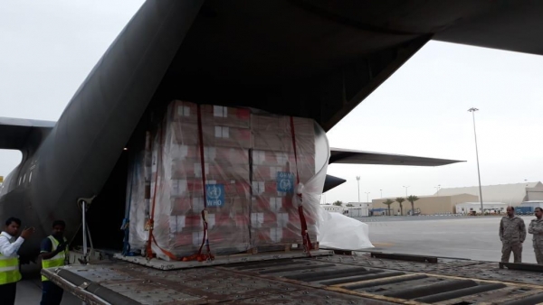 وكانت طائرة سعودية تحمل إمدادات طبية تضم معدات حماية للعاملين الصحيين واختبارات فحص مختبري وأدوية ومستلزمات أخرى وصلت قبل يومين إلى مطار عدن لدعم القطاع الصحي في اليمن لموجهة كورونا.