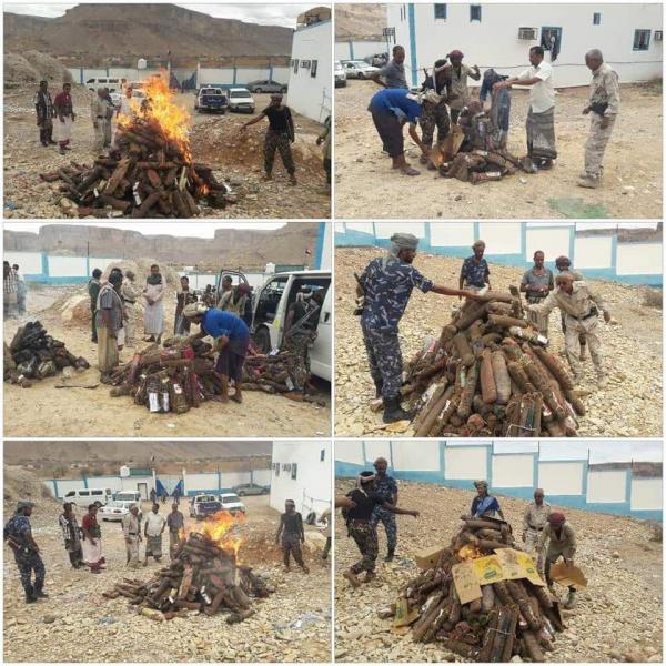 قامت الأجهزة الأمنية بمديريات دوعن، الشحر، وغيل باوزير، بمحافظة حضرموت، بإتلاف كميات من القات كإجراءً عقابي على المخالفين لقرار منع دخول القات لمحافظة حضرموت.