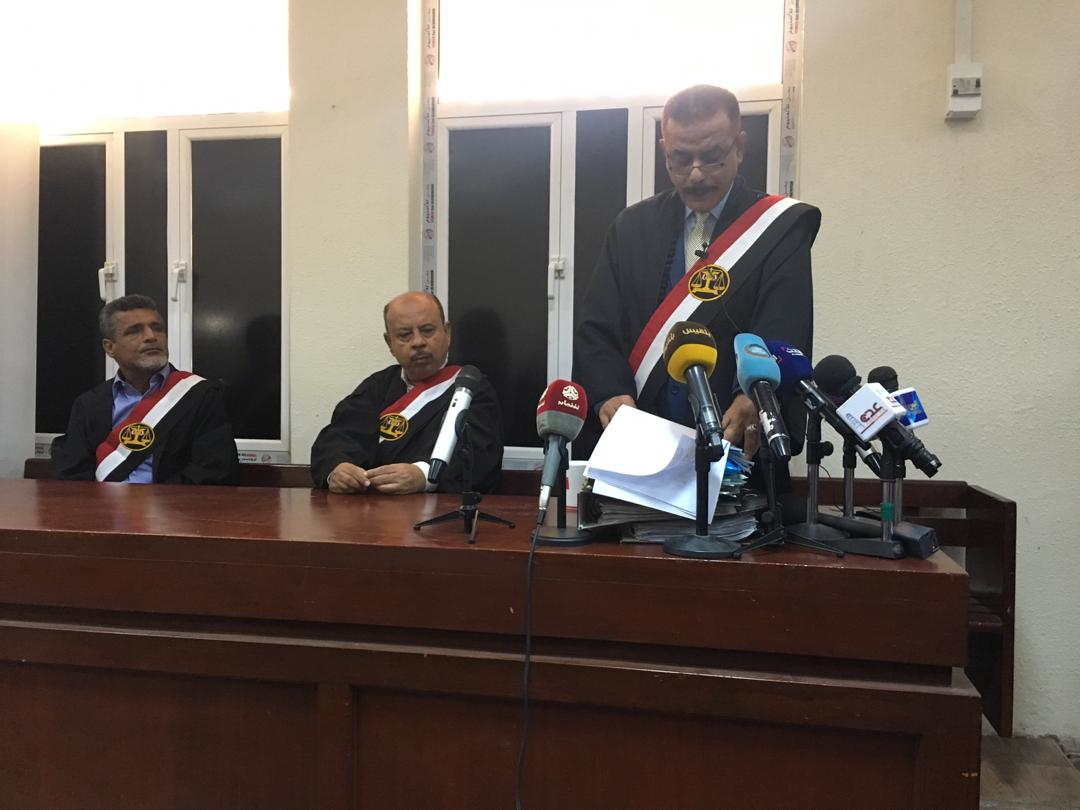 عقدت المحكمة الجزائية المتخصصة في العاصمة المؤقتة عدن، اليوم الخميس، برئاسة القاضي وهيب فضل، أولى جلسات محاكمة المتهمين بقضية الانقلاب على المؤسسات الدستورية في القضية رقم 165 جرائم جسيمة، والبالغ عددهم 32 شخصاً كمرحلة أولى.