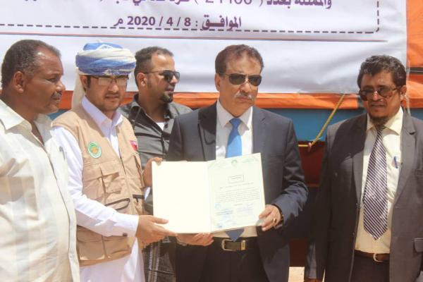 حضر استلام قافلة المساعدات أمين عام المجلس المحلي بالمهرة سالم نيمر ومدراء عموم مديريات المهرة.
