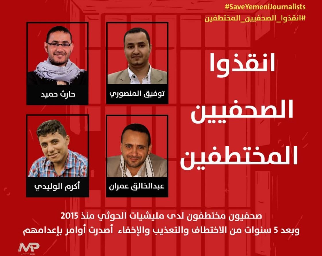 وأضافت أنها "عملت جاهدة لإيقاف الظروف القاهرة لاحتجازهم والعنف الذي طالهم من قبل جماعة الحوثي التي تعاملت بكل شراسة معهم إلا أن كل مساعي الإفراج عنهم لم تر النور لدى جماعة تبدي موقفا صلفا تجاه حرية الرأي والتعبير"