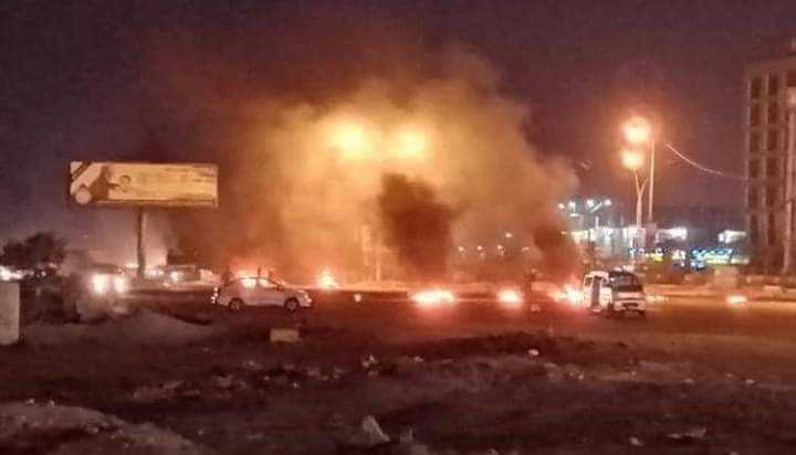وتداول ناشطون فيديوهات لإحراق الإطارات في بعض الشوارع وتُسمع أصوات تصرخ "لا كهرباء ولا ماء"، في حين نشرت حسابات على تويتر فيديو يظهر فيه شبان يهتفون "لا انتقالي لا شرعية ثورتنا ثورة شعبية".