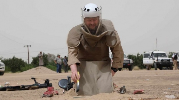 وقال المركز في بيان، إنه تمكن من انتزاع 45 لغماً مضادة للأفراد، و 175 لغماً مضادة للدبابات و 435 ذخائر غير متفجرة، و16 عبوة ناسفة.