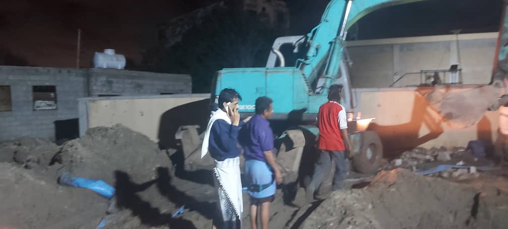 الشاجري يتابع سير عمل اصلاح البيب الرئيسي بعد تعرضه لضغط السيول
